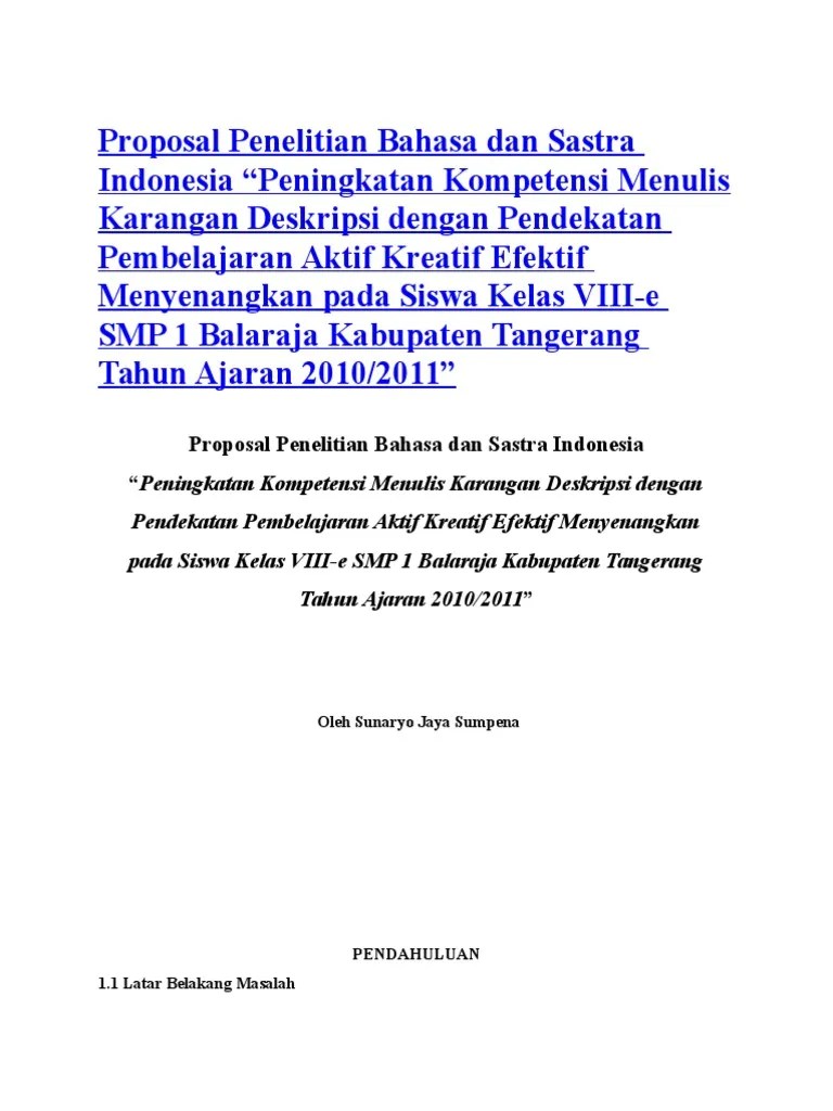Oleh karena itu, saya perlu mengadakan penelitian, mengenai ptk ( . Contoh skripsi bahasa indonesia tentang menulis in addition it will feature a picture of a sort that could be observed in the gallery of . Informasi mengenai contoh proposal skripsi bahasa indonesia menulis narasi. Contoh proposal skripsi setiap mahasiswa pasti akan mengalami yang namanya skripsi atau tugas akhir untuk jenjang sarjana s1. Mulai dari penyusunan proposal sampai selesainya skripsi ini, saya menyusun sendiri.